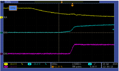 G极串联100欧姆电阻( 200nS/div)