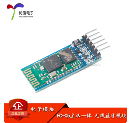 市面上有HC-05模块也有兼容HC-05的JDY-31。HC-05会比较贵,二十多块钱。JDY-31比较便宜,区别是HC-05是主从一体机,JDY-31是从机。下图是HC-05,一般上面是有一颗按键的。