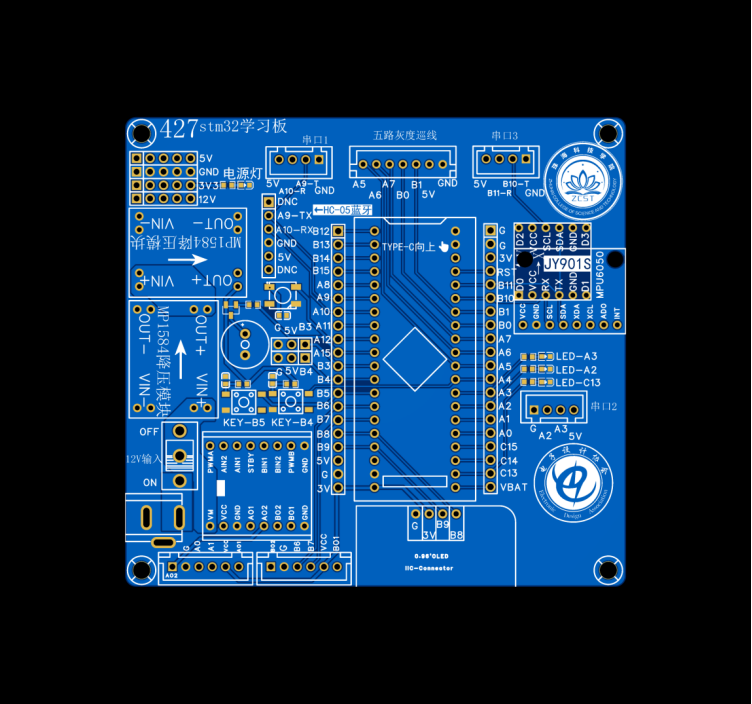 按照电赛的经验和需求,设计了这款拓展板,引脚兼容嘉立创的地阔星还有淘宝买的最小系统板。都可以用。ZCST珠科电协。