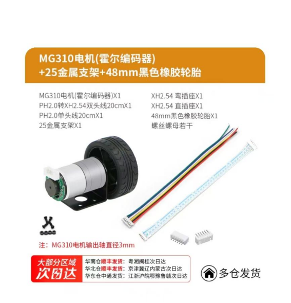 310电机,带霍尔编码器,带电机架和轮子。买轮趣的就行,可以和6050一起买。