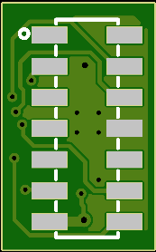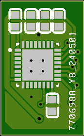 关于焊接问题,我把地连到了中间散热焊盘,散热焊盘打了四个孔穿到背面连接14PIN座子。不知道是工艺问题还是本人设计问题,由于使用QFN封装的芯片,芯片管脚接口焊盘与芯片散热焊盘中间的阻焊层容易被烙铁烫掉,锡流到散热焊盘上了,导致芯片管脚端吃不到锡。因此我建议使用锡膏和热风枪来焊接芯片,最好一次焊接成功,避免出现掉阻焊的问题。