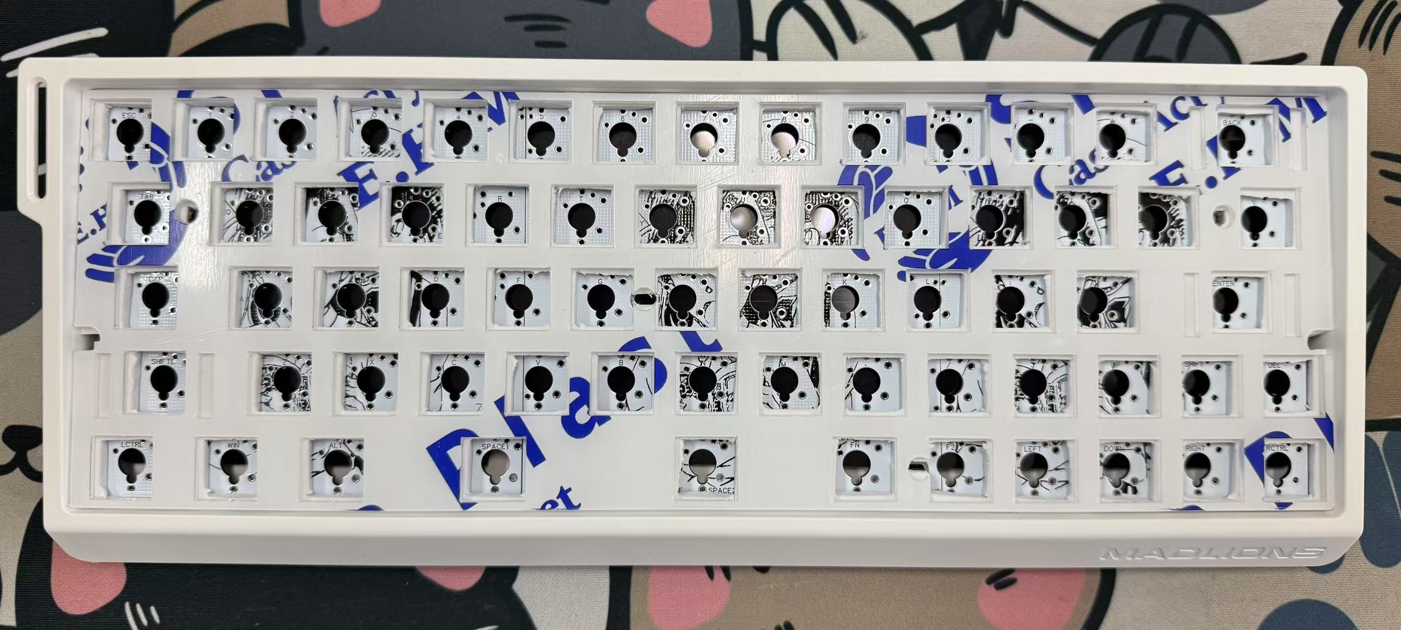 因为,本人不是很在意键盘的轴体和键帽,日常以写代码和码字为主,主打抗造能用就行。因此所有的都使用最简单的配件,轴体和键帽就从手头的复古键盘上拆下来,凑合着用。为了后期能更新换代,使用了铜鸡眼,支持热插拔。万一后期不喜欢这个轴体了,想追一下潮流呢....