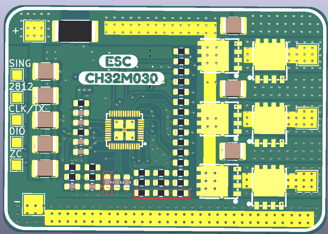 由于单片机的调试口DIO和比较器的引脚复用,在下载程序前反电势检测的几颗电阻和电容先不焊接,待烧录完程序后补焊。