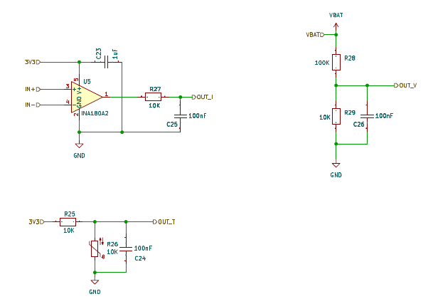 电压采样没啥好说的,就分压送到ADC的一个通道即可。由于这个芯片内部没有温度传感器,需要外部接一个NTC,送到ADC去采样。对于电流的采样我这里使用了一个外置的放大器,如果不考虑兼容G8R7的封装,可以直接使用内部的放大器,这样BOM再次精简。