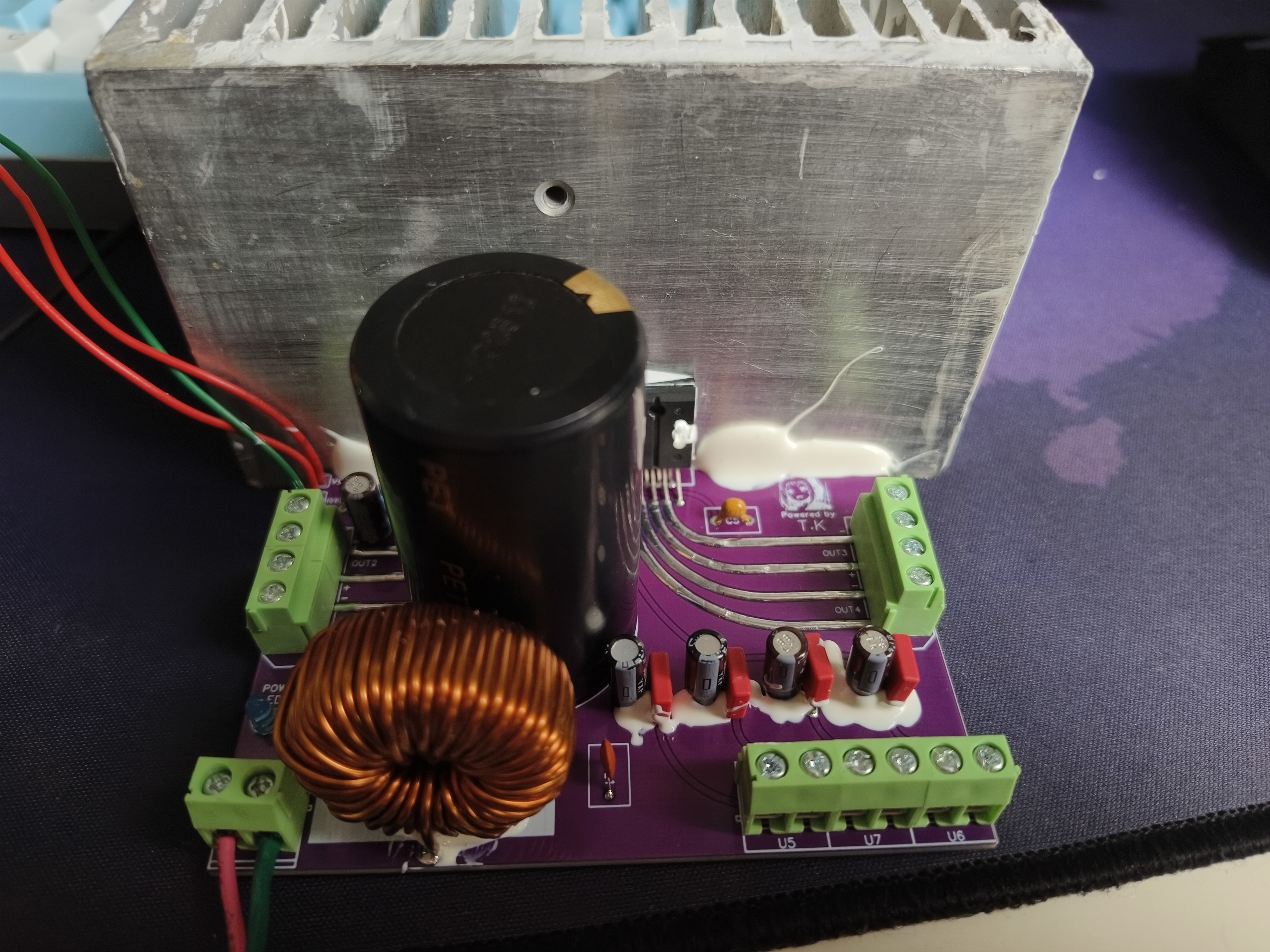 已经过验证可以正常使用,滤波使用330UH电感和10000uf电容+104薄膜+104瓷片时,开关电源供电在半夜都听不到底噪