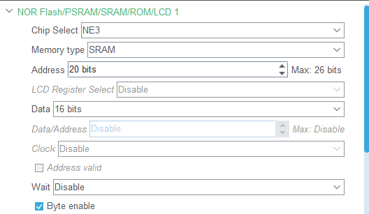 连接方式:FSMC的A19、NE3连接译码器,139的Y0、Y1分别接两片SRAM。访问A0~A18的1MB时,片选Y0;访问第二片的1M时,A19输出1,片选Y2,这样可以访问2MB。(单独买一个102416似乎比两片51216要贵)。