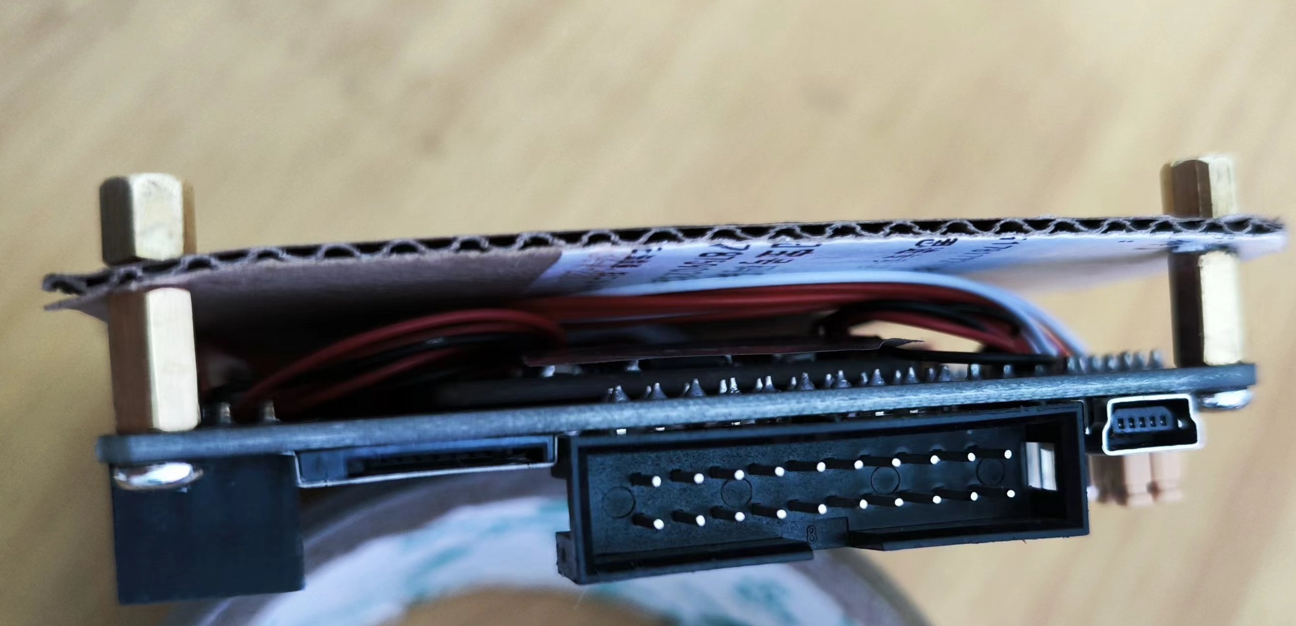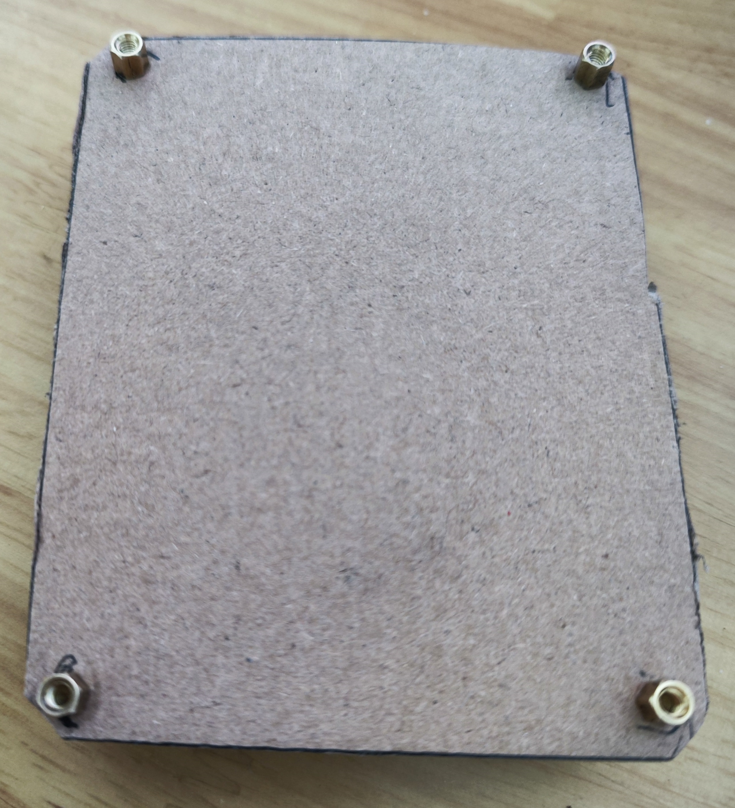 为了保护板子,用纸箱片做个底板,用铜柱固定。