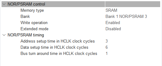 FSMC的参数设定,经过十小时的测试没有出错,再小点3、5、1就有少量的出错,如果出错就改大点。