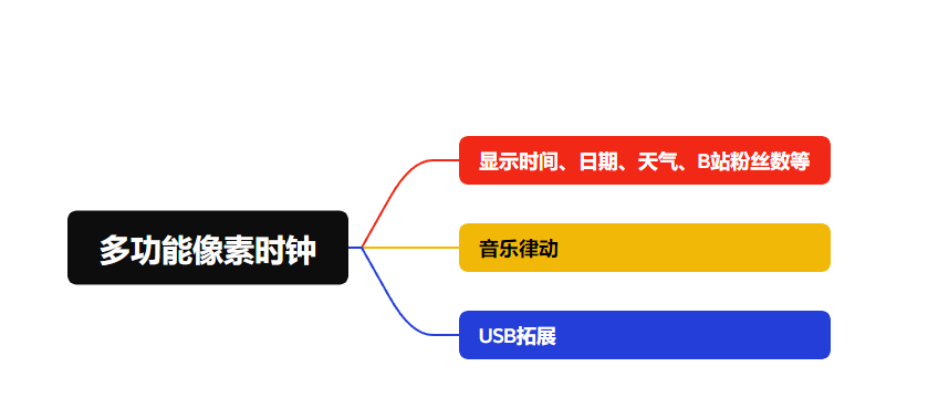 本产品是一个能看时间、天气、能当桌面音响、能作为一个USB拓展坞使用的多功能像素时钟,软件、硬件、结构均由本人独立完成,欢迎复刻和改进