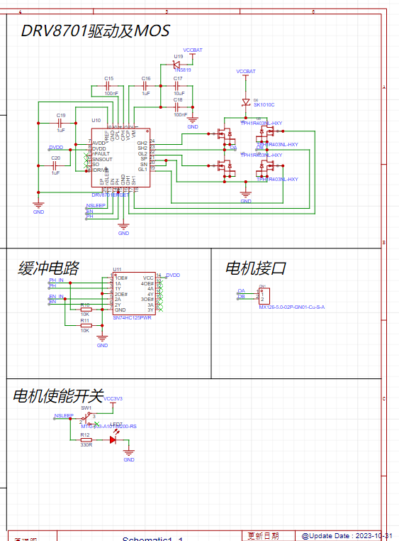 2. 采用DRV8701作为底轮有刷电机驱动,可通过PWM控制电机的正反转以及调速。无刷电机自带驱动,不需要额外驱动