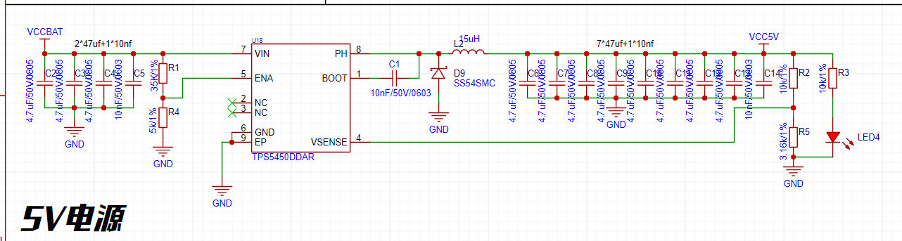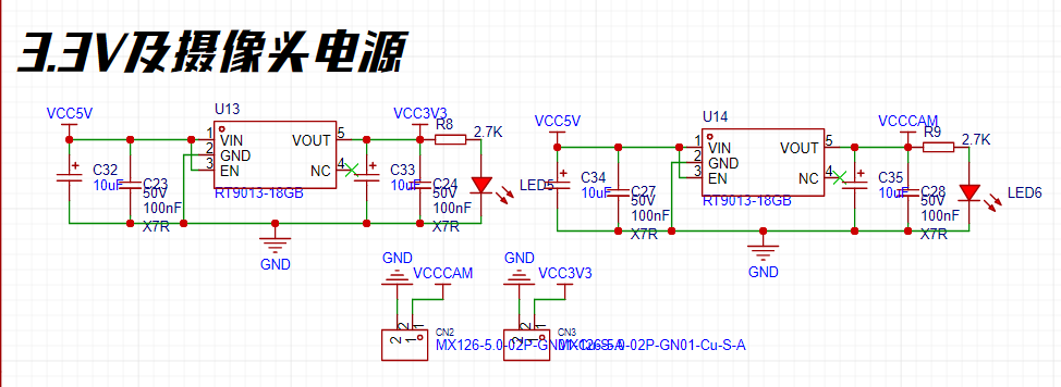 2. LDO稳压电路采用RT9013,用于给单片机供电以及外设供电。