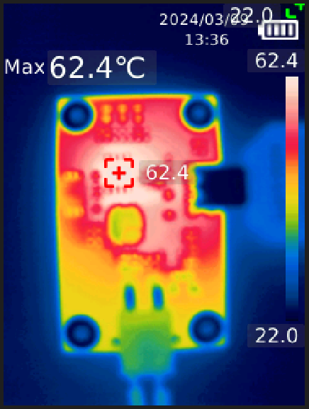 充电时温度最高点在IC上,在3A充电电流下,温度最高63℃(室温20℃)。
