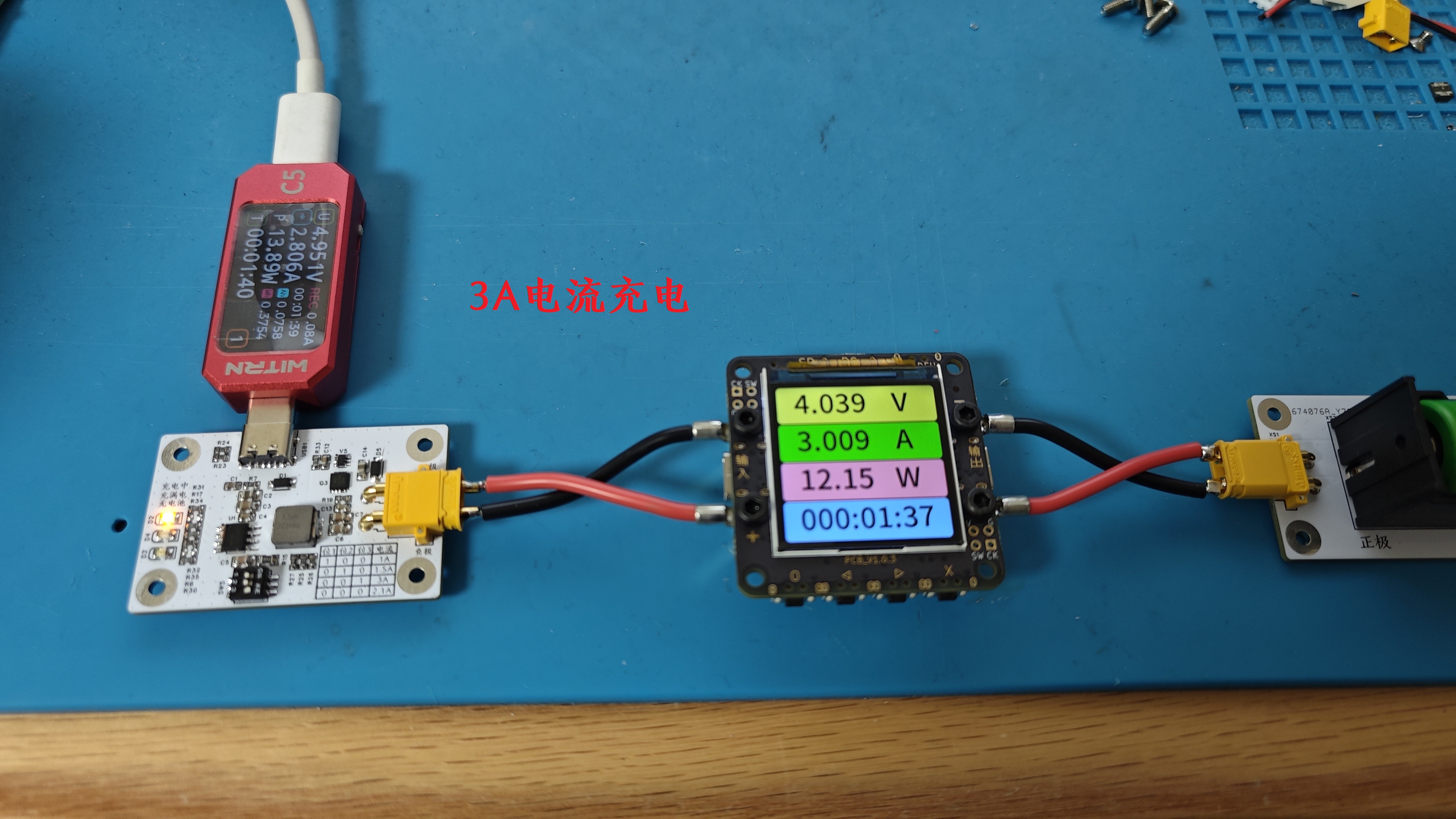 在3A档位,手册计算出要连接45K电阻,实测要连接48.7K电阻充电电流接近3A。