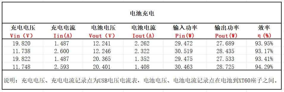 2、充电效率:测试3S、5S电池在PD20V、PD12V下充电效率