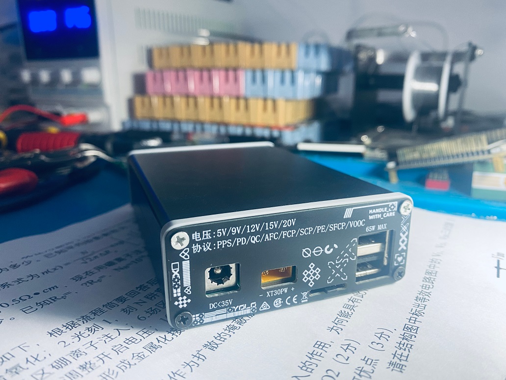 使用STC8H单片机作为控制核心,该单片机是8051内核的单片机,代码开发比较简单,外围电路基本上通电就能用。快充使用智融多种快充协议芯片,芯片支持iic通信进行芯片状态读取,芯片支持多种快充协议,可以兼容市面上绝大部分的快充设备。显示使用0.96寸TFT彩屏作为显示器件,可以清晰地显示输出的电压、电流和功率了解充电状态。C口和A口作为输出端口,输入为DC座和XT30PW。交互操作使用拨码开关。目前只有功率显示,更多功能后续会添加。