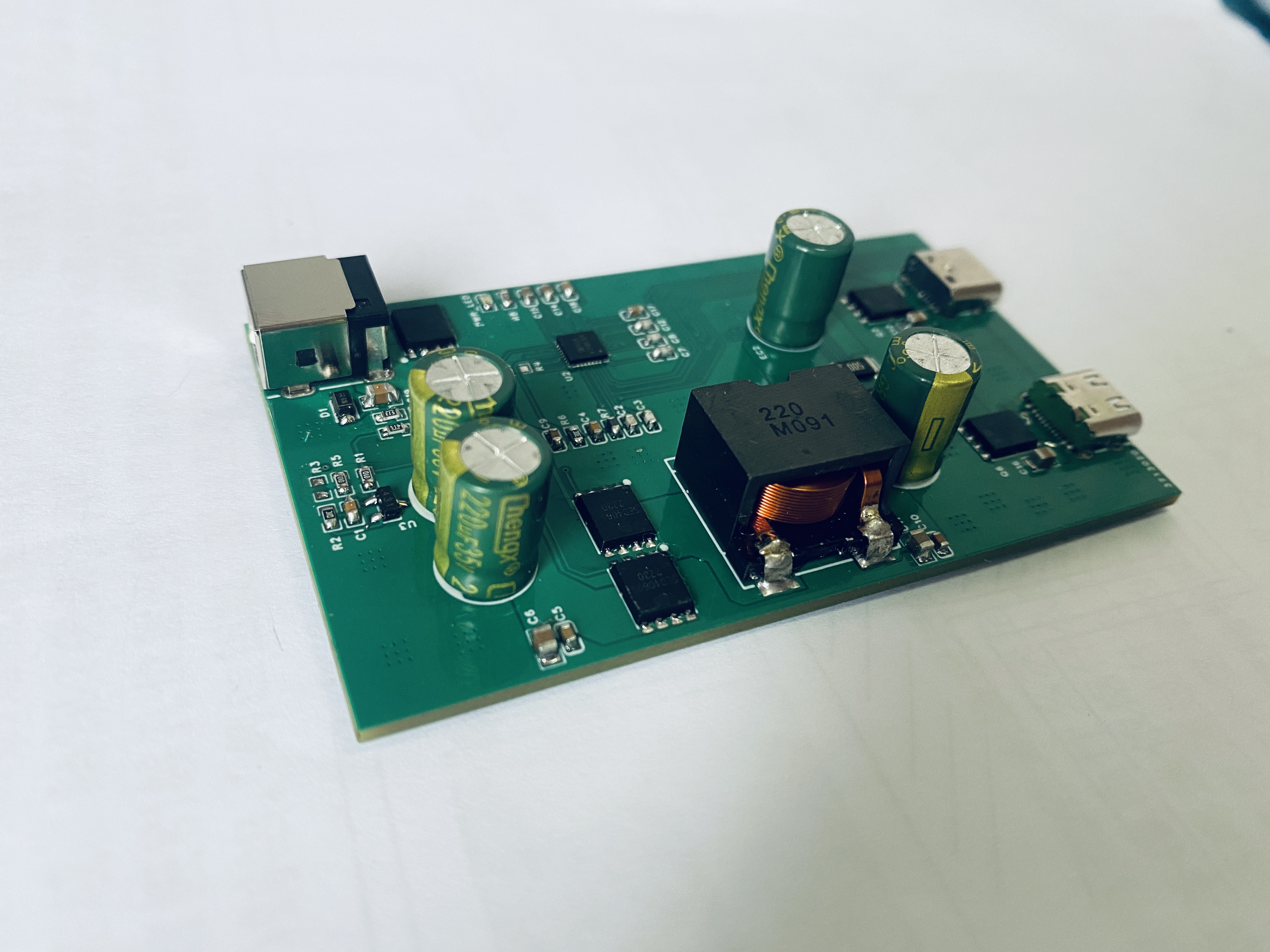 基于智融sw3556设计的最高140w双C口协议快充模块。C+C任意口快充输出,采用外置双 N 功率管,负载能力可达 7A,支持 PPS/ PD/ QC/ AFC/ FCP/ SCP/ PE/ SFCP/TFCP 等多种快充协议。因为是验证板布局比较宽松。