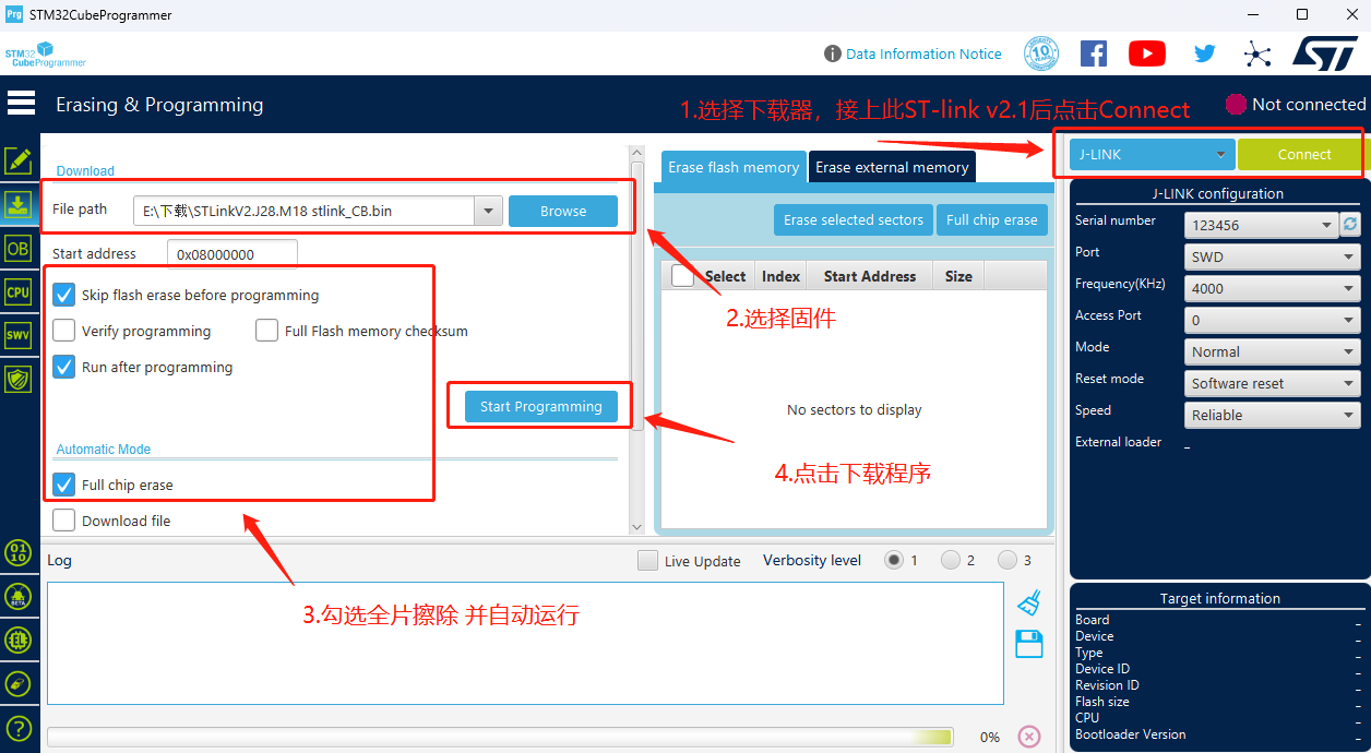 2.下载固件后可使用STM32 ST-LINK Utility进行在线固件更新