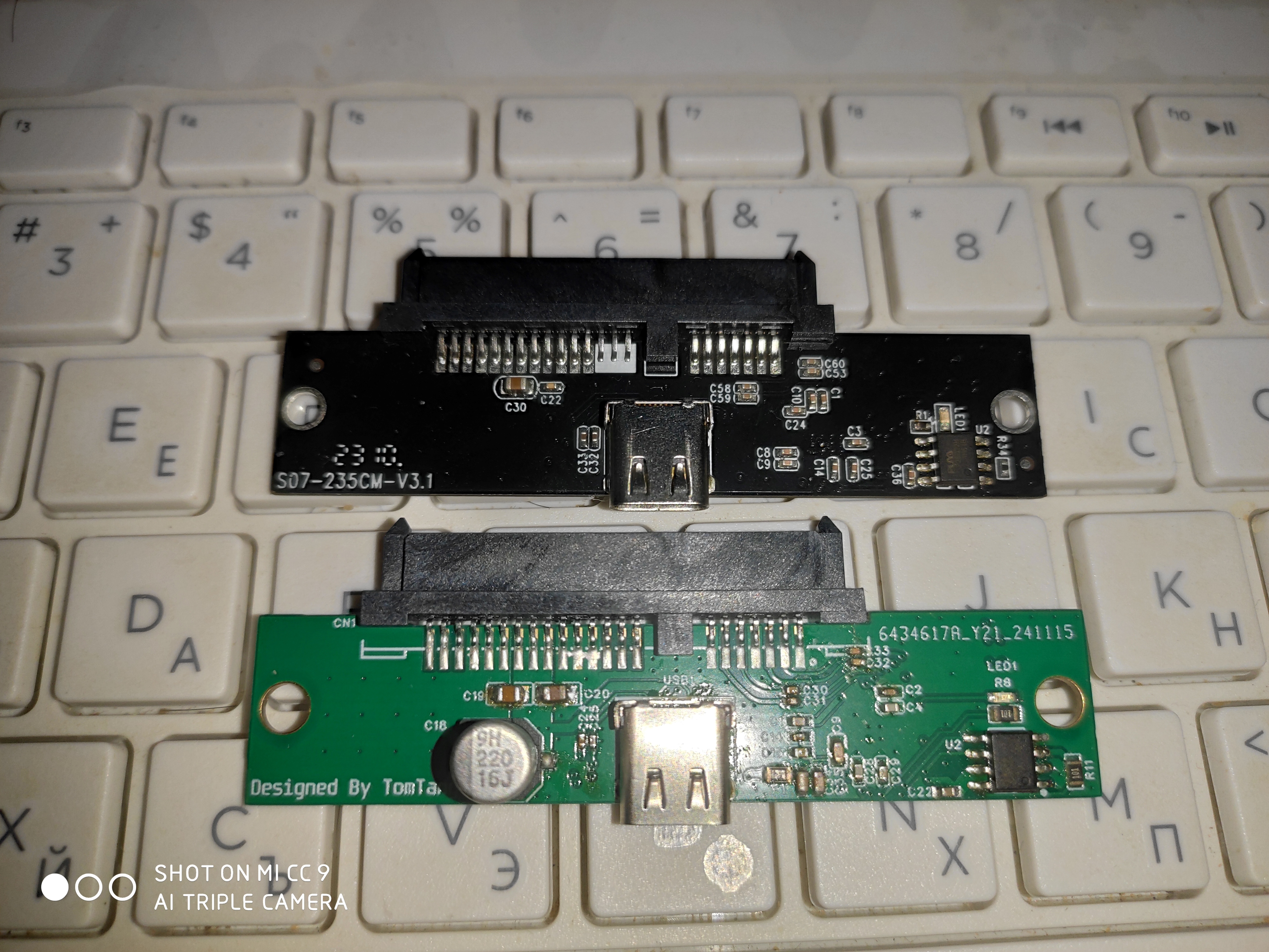 关于部分零件选型。USB3.0的耦合电容可以用0.1uF或0.22uF。SATA信号线一般用10nF,但100nF(0.1uF)测试也影响不大。SATA母座使用15+7Pin 1.2mm夹板式,S103C原厂PCB板厚1.0mm。打板建议也用1mm,最大可兼容1.2mm。再厚会导致接口插不上去。