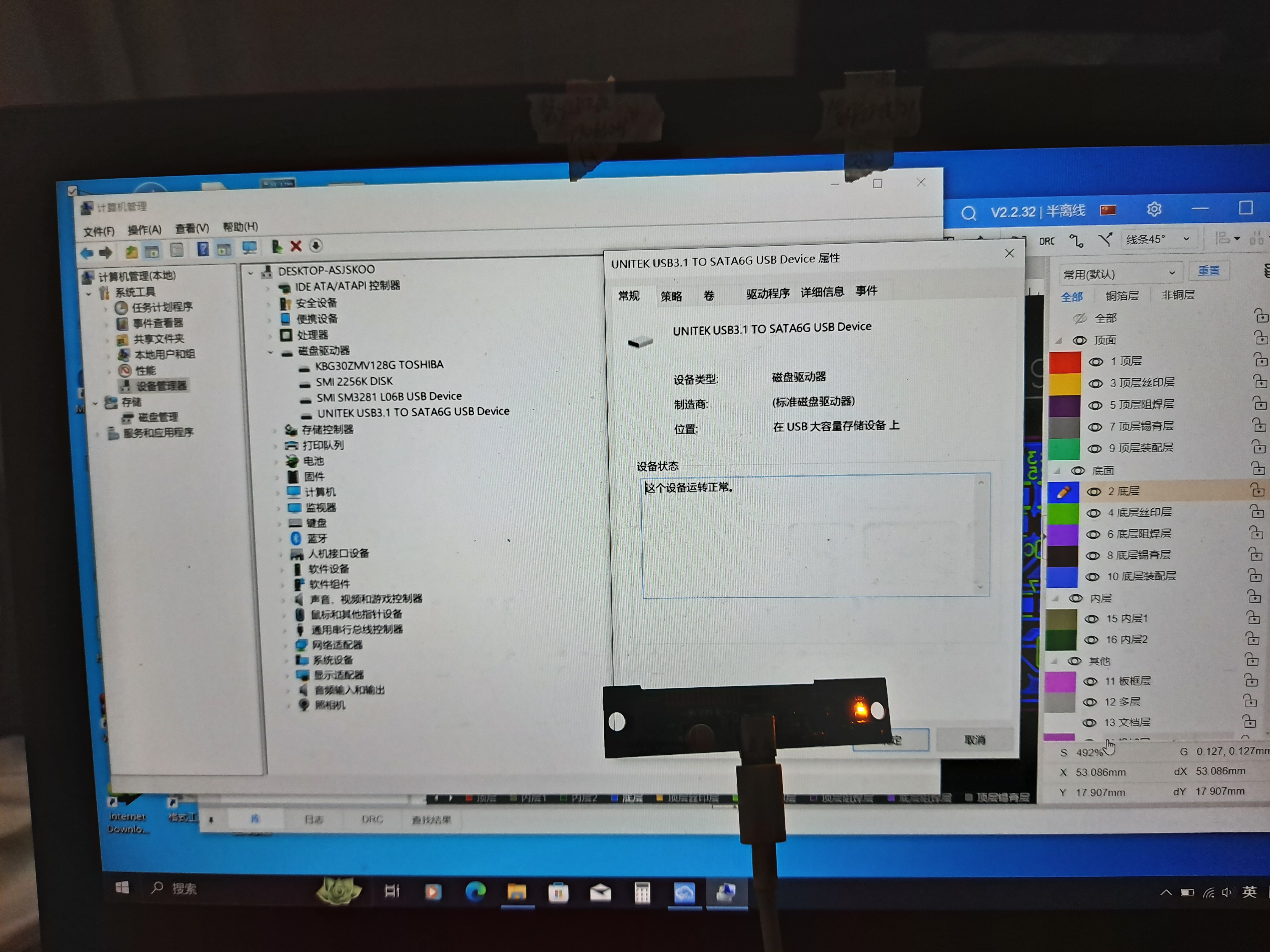 SATA3转USB3.1 10Gbps,基于ASM235CM。4层PCB,面积16*72mm,兼容部分市售产品塑料外壳。已进行速度和稳定性测试。