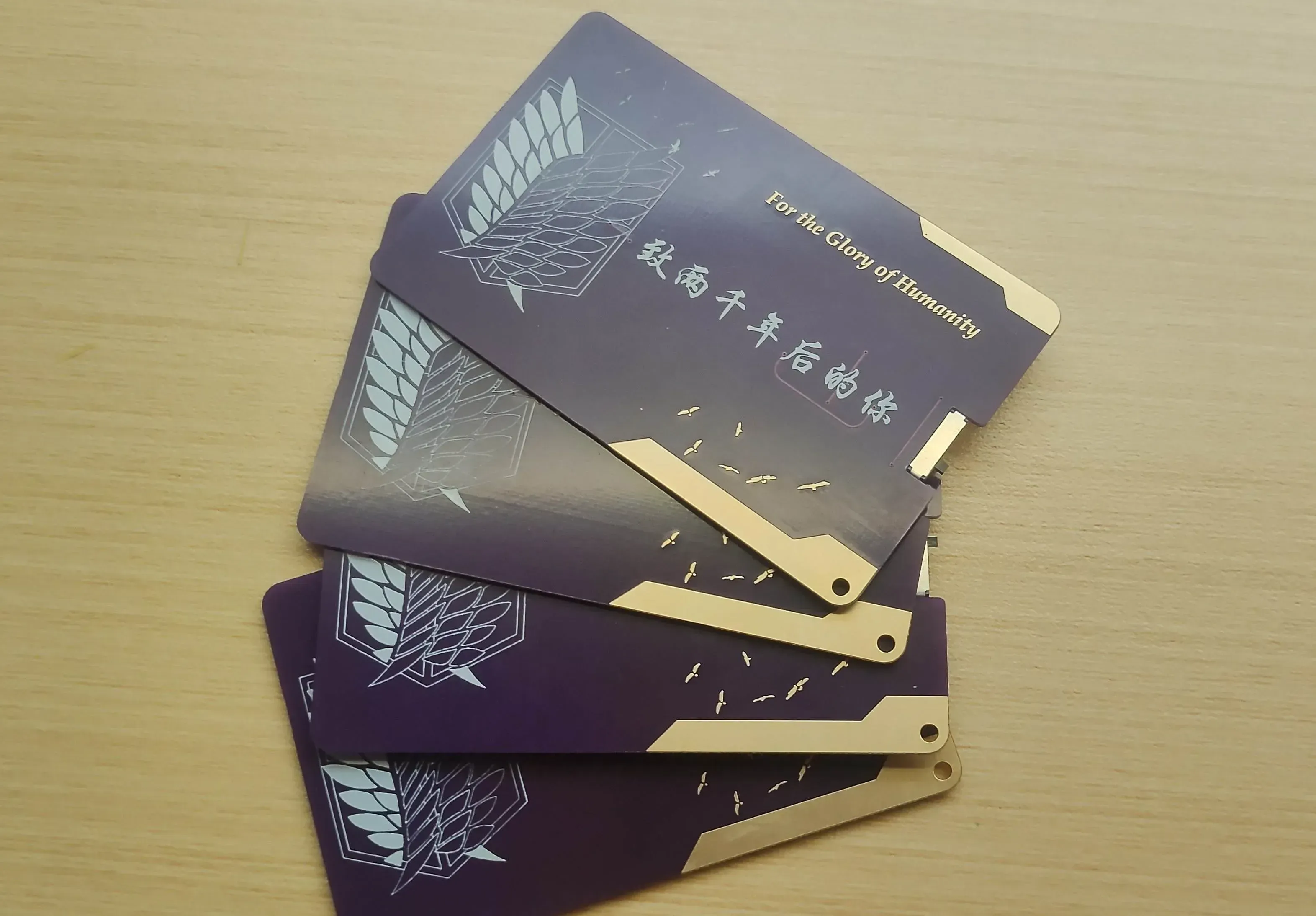 个人独白:喜欢巨人很多很多年了,学会PCB绘图后就想把自由之翼的标志加入NFC卡片中,第一版四合一卡片中加入的语句是“什么都无法舍弃的人,什么都无法改变”,因为太过中二(不是主要原因),就选中了现在这句''致两千年后的你''。巨人虽已完结,但它带给我的关于成长与坚韧的思考,一直是我坚持下去的动力。以后我会更加努力学习,创建出真正属于自己的优秀工程。