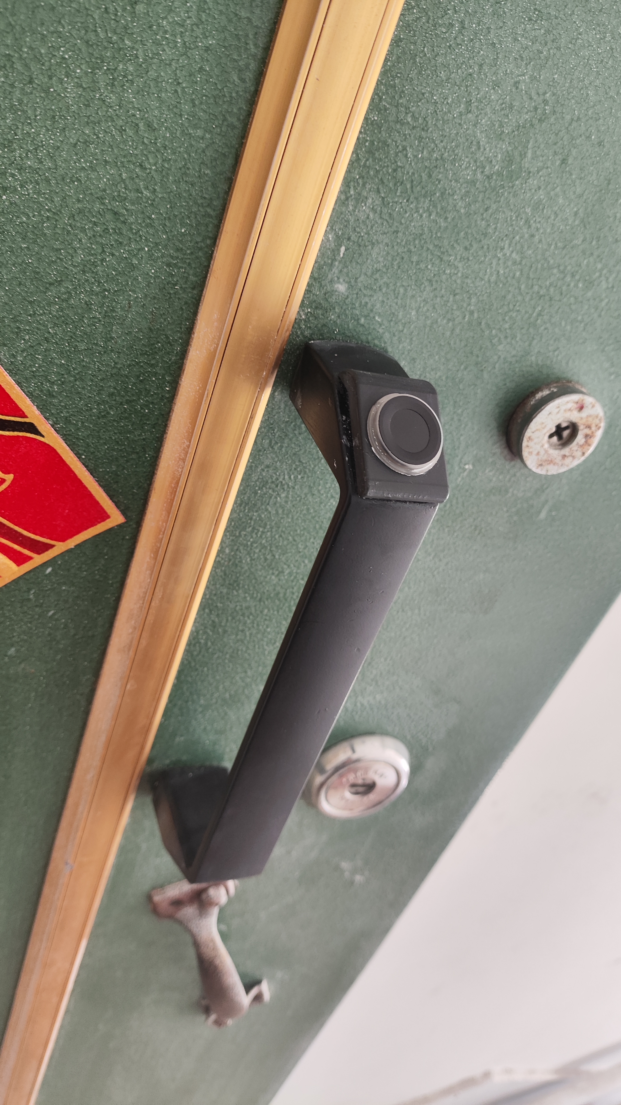 设计采用市场上的铝合金握把,指纹模组通过打印件安装在握把上无线材外露。模块成30°夹角安装大拇指可以舒适的进行指纹扫描,实现从识别指纹到拉开大门一个动作完成。
