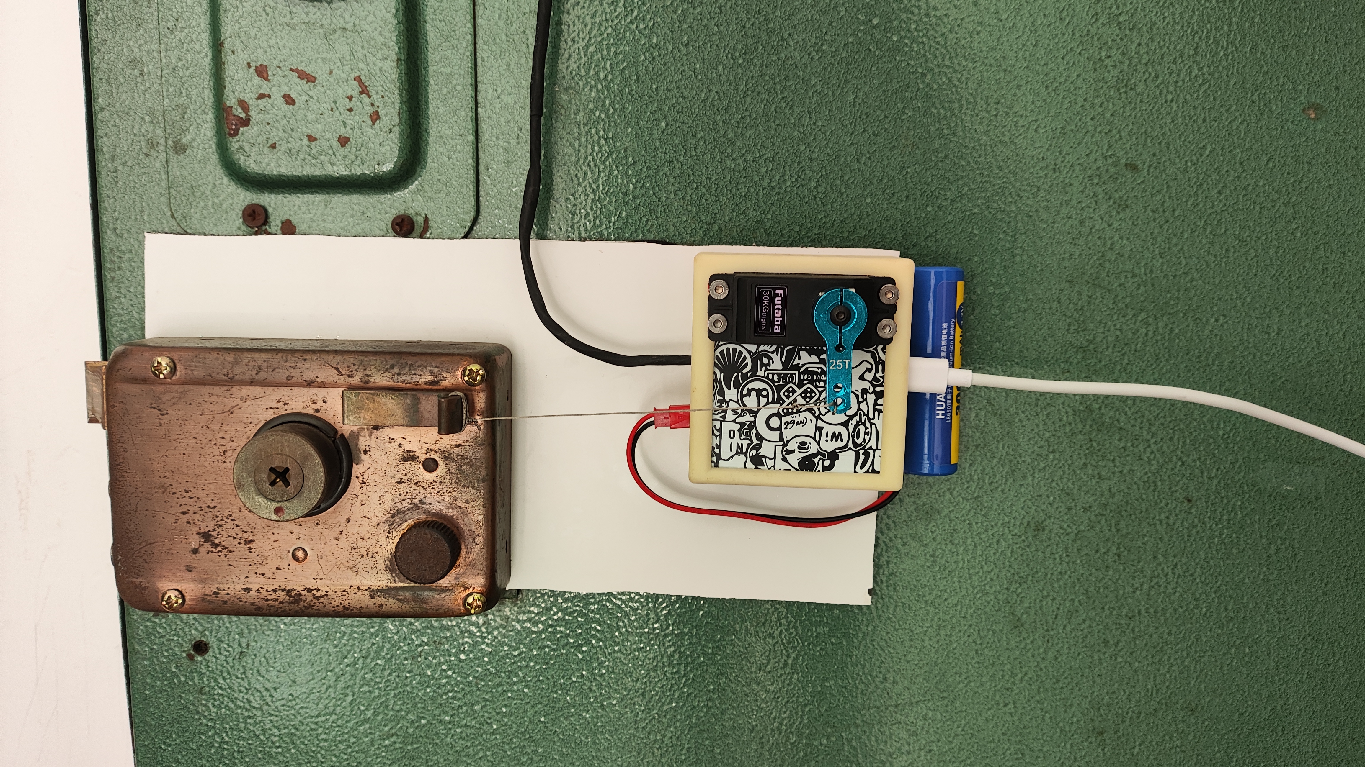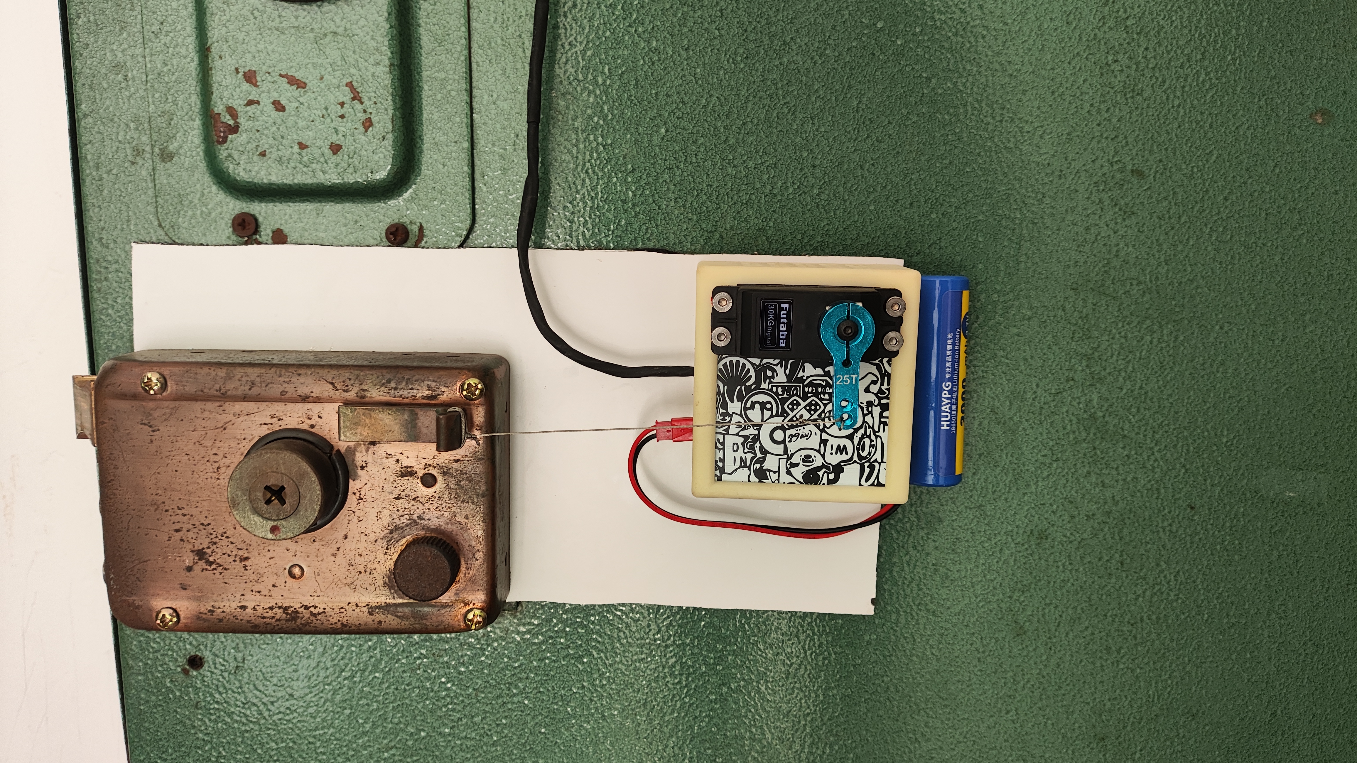 使用舵机拉线方式进行软连接到锁体结构,不妨碍手动操作。30kg舵机基本上想拉多大力的锁都可以实现。这里我是通过一块亚克力板固定到门上的,但结构的背部为一整个平面用3M强力双面胶也可以的。