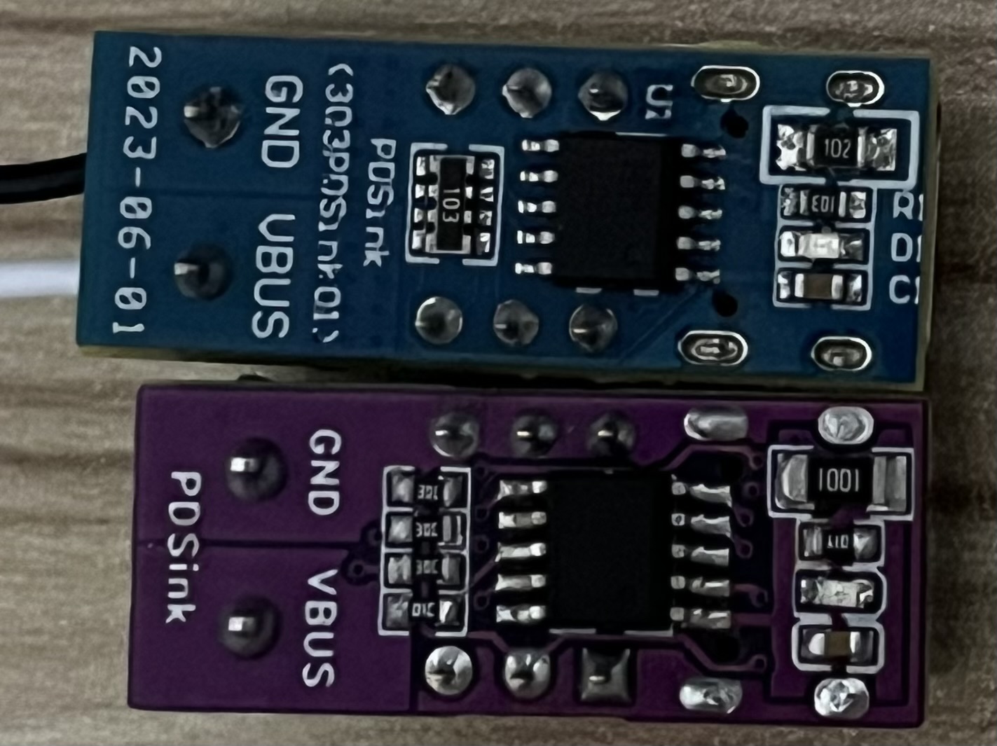 外形非常小巧,灵感来自 TB 上一些卖家售卖的 PDSink 模块(接近1:1复刻,下图上面是 TB 购买的模块,下面是本工程焊接出的模块)。