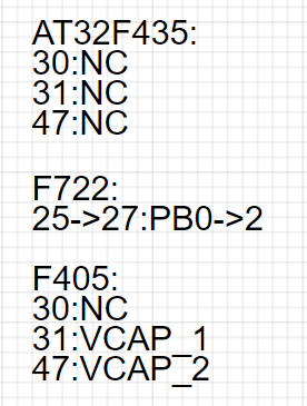 F722、F446可直接使用,F405需要更换vcap引脚电容,AT32F435理论上能用,但是未测试