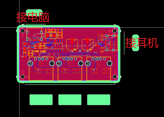 基于SL 2.1A的USB 2.0集线器HUB,带3D打印外壳。外壳文件请在立创EDA中自行导出。HUB有两个TYPE-C接口,上面的连接电脑,右边的TYPE-C用来连接苹果的Ear Pods有线耳机。所有功能已验证正常。