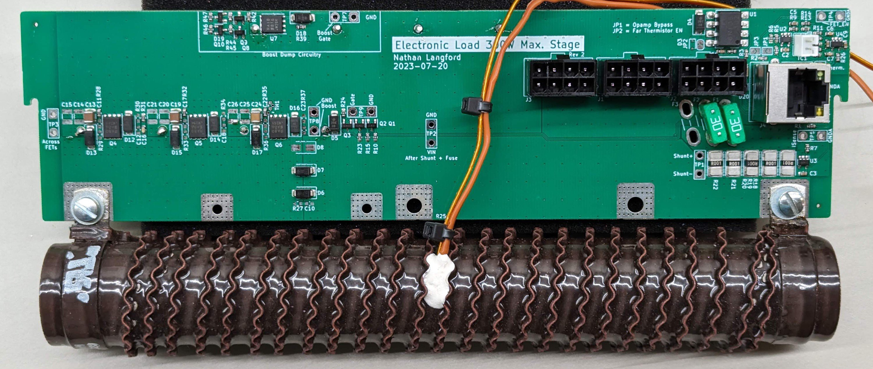 由于每个负载级都是完全独立的,因此系统可以轻松地缩小到1个负载级(尽管您只能以这种方式获得一点负载分辨率:关闭和打开),一直到达到53kW连续/ 10kW脉冲的总体规格所需的30+负载级。第一个原型设计用于 8 个负载阶段。然后,一旦我验证设计是合理的,我就可以扩大已知良好设计的数量。需要更大的连续负载?只需添加0.5R级!需要更多脉冲负载?只需添加0.1R级!
