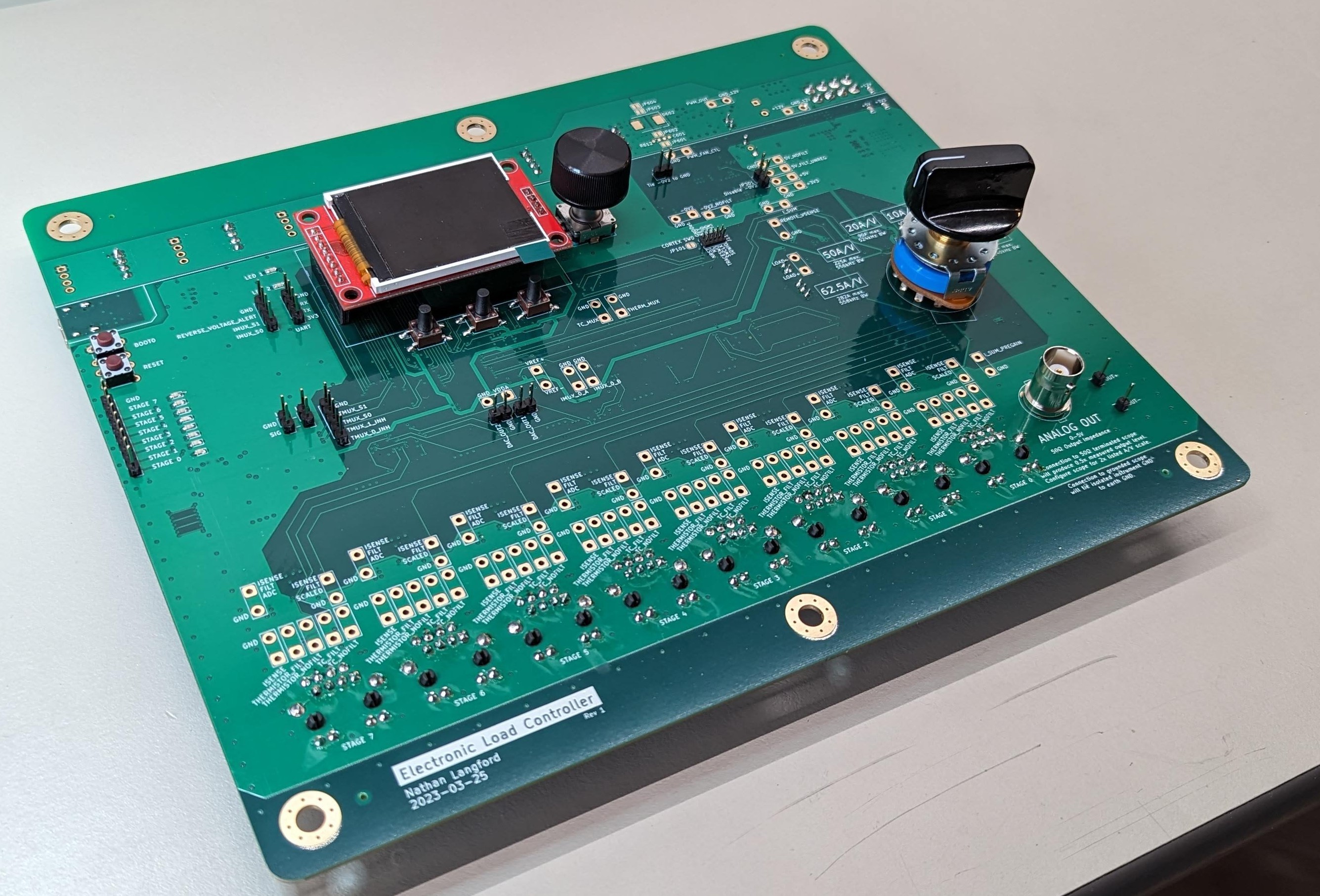 - 控制PCB - 操作的大脑。从用户那里获取输入,并实现负载阶段的正确组合以产生所需的负载。监控每个负载级的温度和电流,为示波器产生模拟输出电流信号等等。
