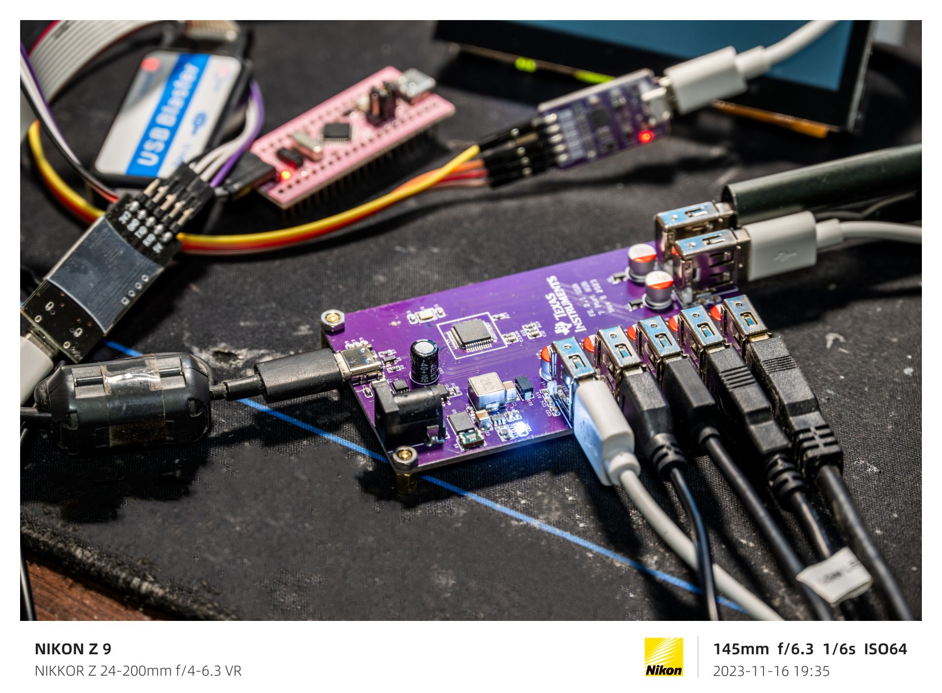 对于电脑来说,电脑上的所有USB接口都属于CPU和PCH的“USB主机”(USB Host)。这就意味着根据USB总线协议规定,每个接口理论上一共可以级联3个USB扩展器。我们在不考虑级联的情况下,每个USB接口都外扩7个接口,这样的可用资源也会显著增加。这样一个低成本的扩展坞对于需要连接大量诸如下载器和串口监视器等低速外设的电子佬来说十分友好。