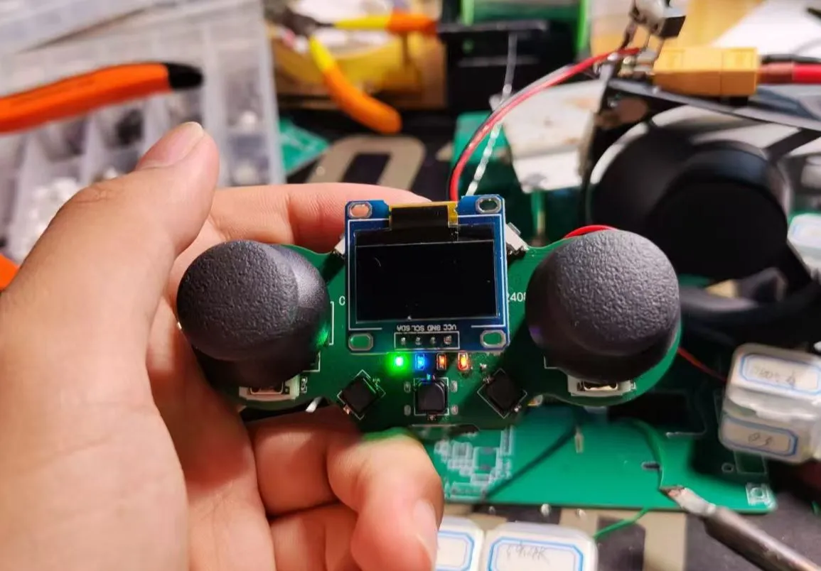 采用ESP-NOW无线通讯协议进行信息传输,同时可扩展为蓝牙控制。提供双摇杆与7按键。并通过oled屏幕实现多级菜单对手柄的设置。例如,可以实现遥感校中,触发力度等。