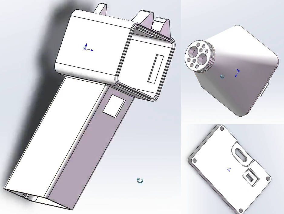 结构件有三部分组成,一是把手(holder),二是猪鼻子(pipe),三是后盖(cover_02)。用solidworks画的,已经上传附件,感兴趣的同学可以下载看看。