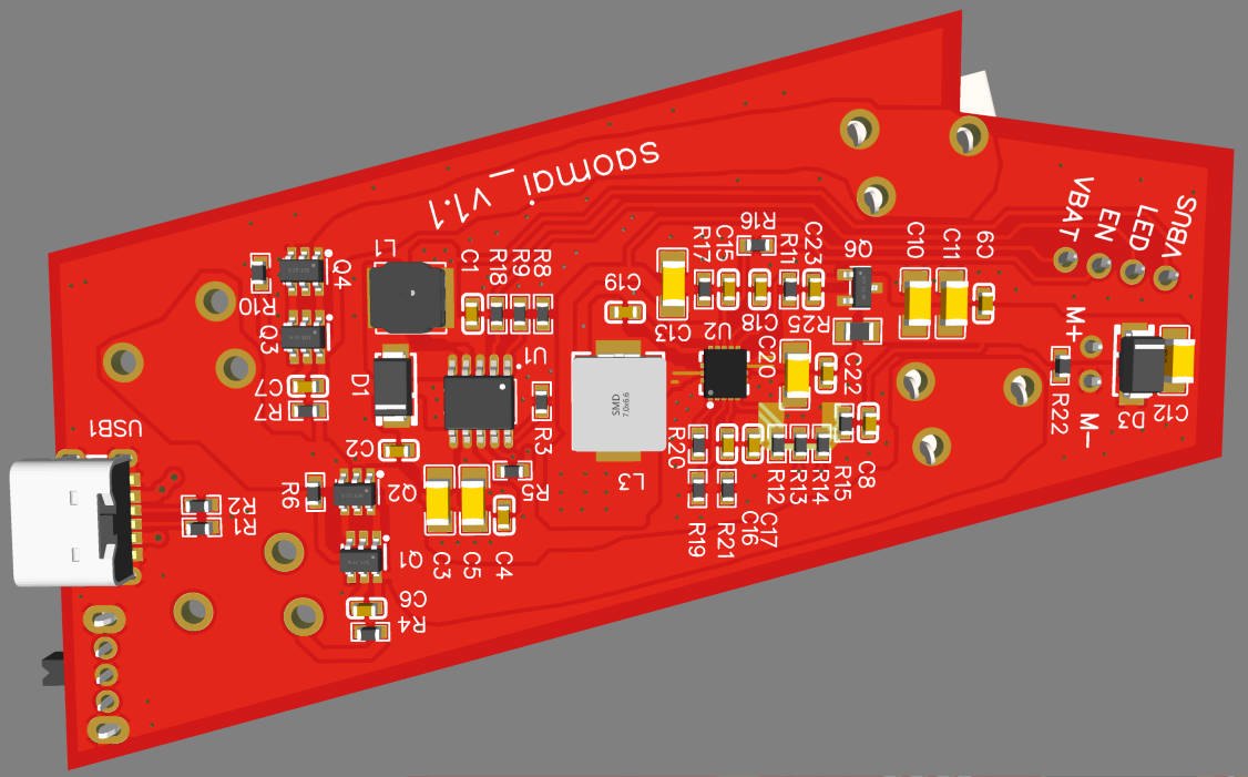 原理图主要包含两部分。 一是充电电路,支持两串均衡充电。二是两段可调升压电路,用于调节输出电压。