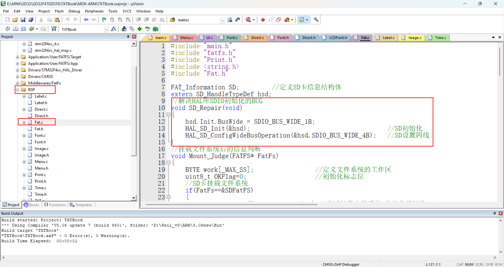 ①配置SDIO和FATFS文件系统,通过文件系统读取字库的点阵信息并将要显示的汉字、字符显示在LCD屏上。