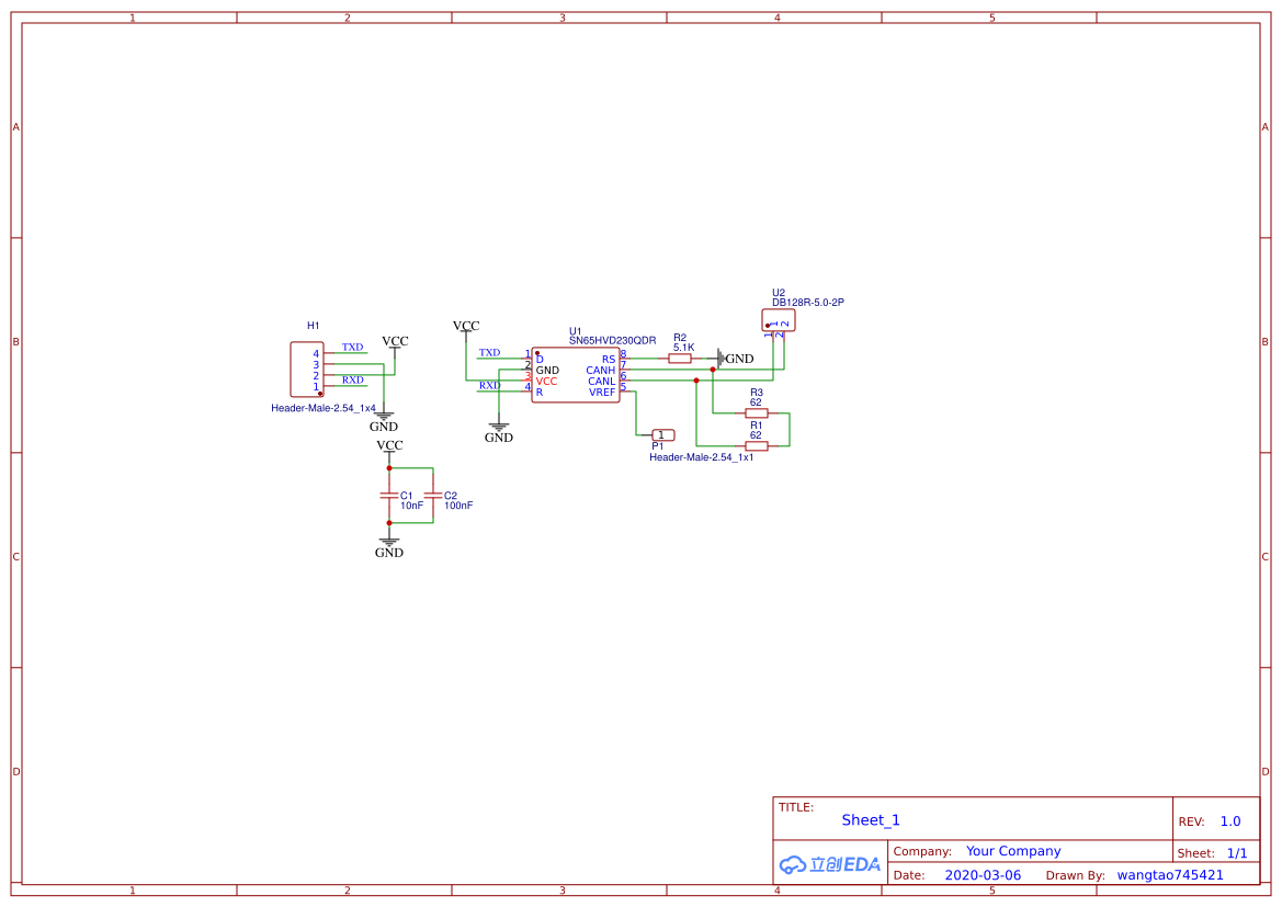 ti的非隔离式CAN收发器SN65HVD的验证板,仅供参考。EASYEDA使用不太习惯,后期用熟练了再修改。主要是接口丝印没有标注。