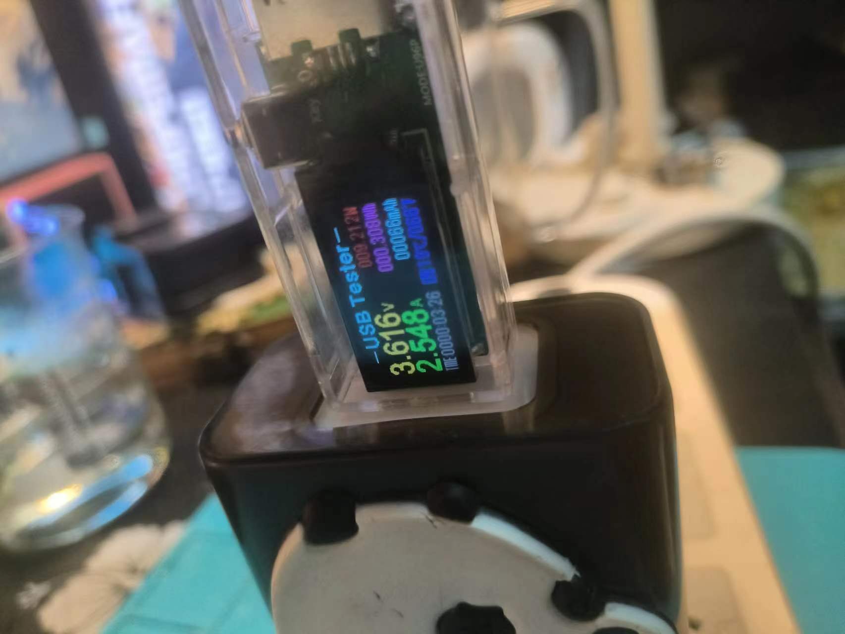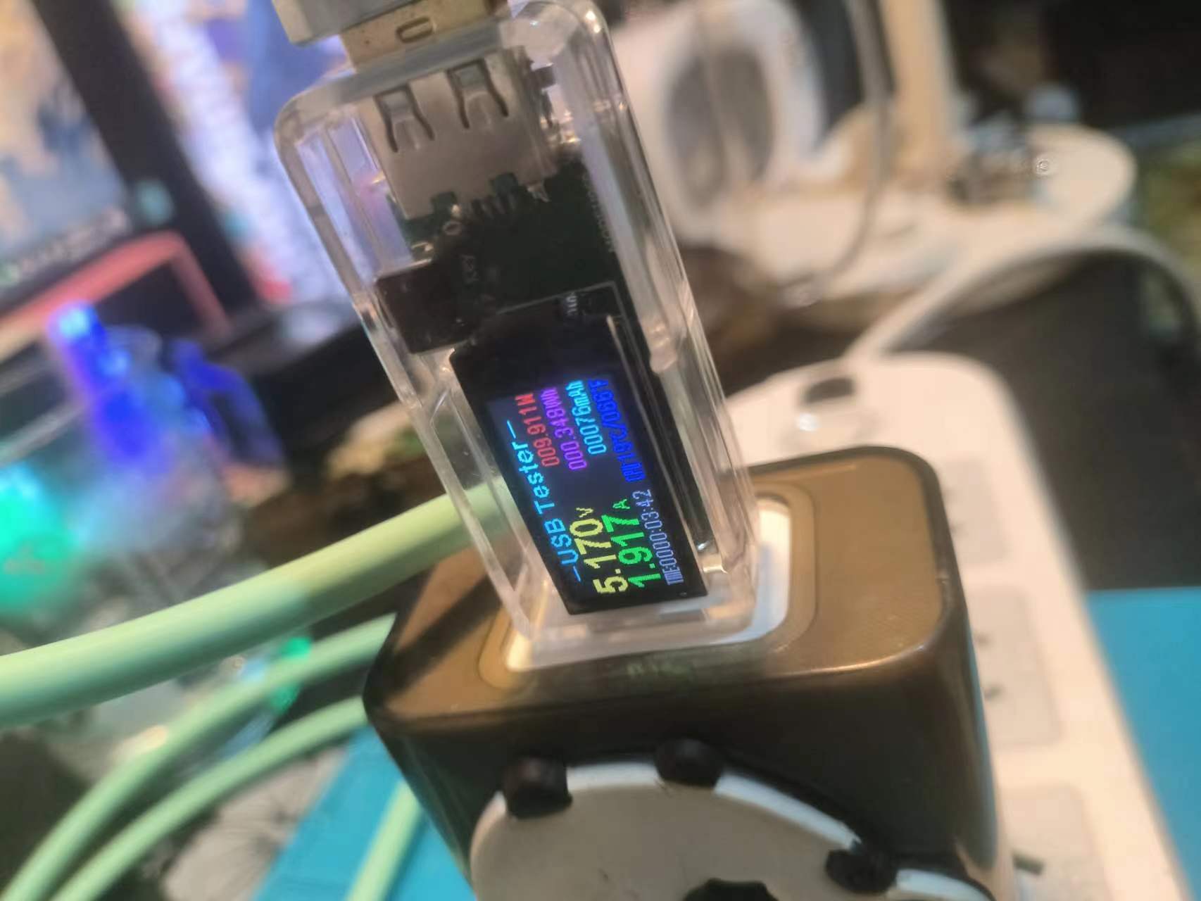 使用USB口充电(应该是在20w左右因为我的这个usb功率检测器带不动,刚插上会黑屏电压到一定才会亮)