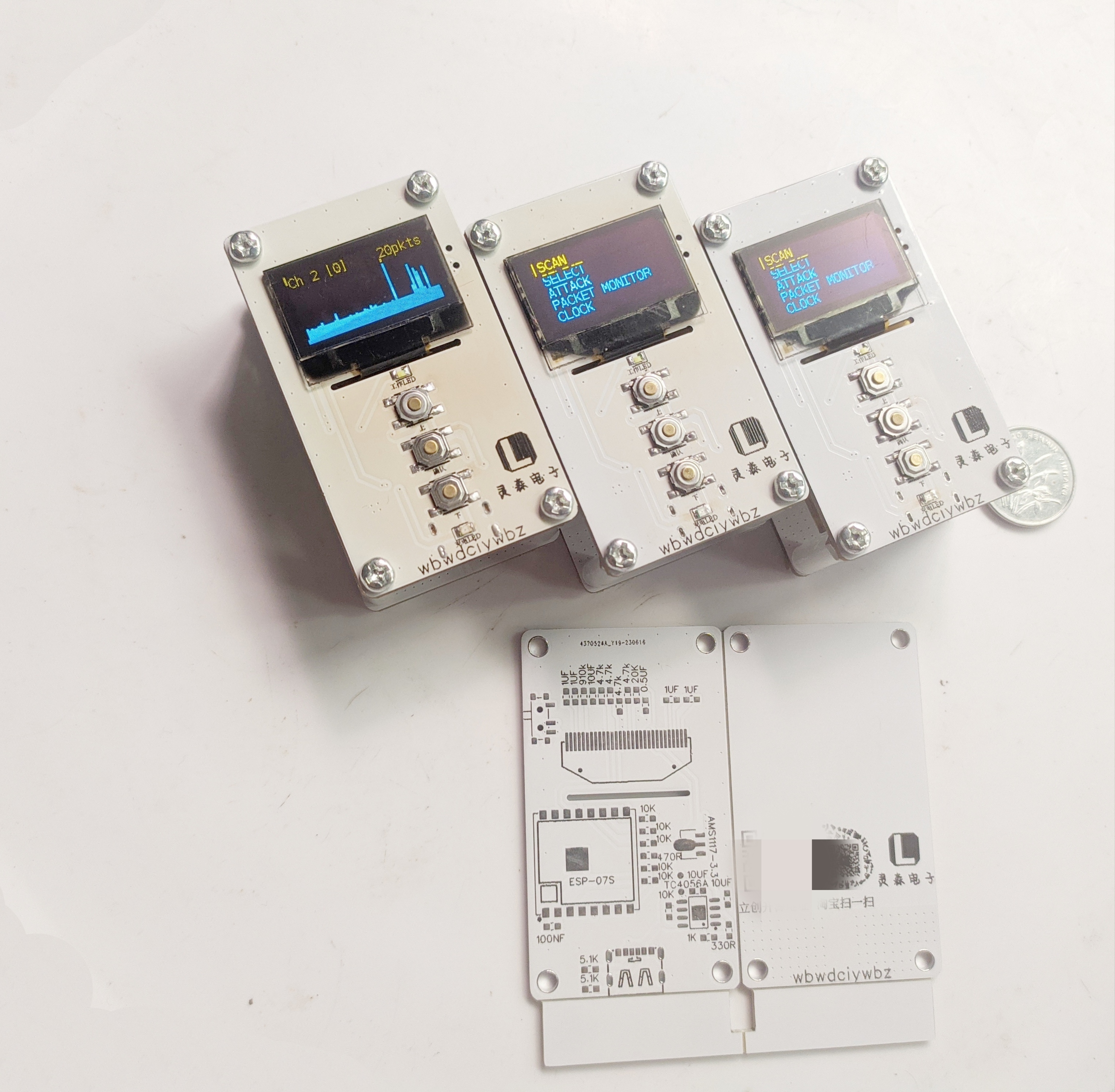 - 该项目硬件部分由我个人创作,源码及固件作者spacehuhn GitHub开源地址