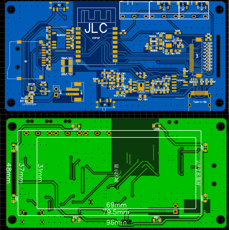esp8266开发板+甘草墨水屏阅读器eda抄板可免费打样,加入LED背光