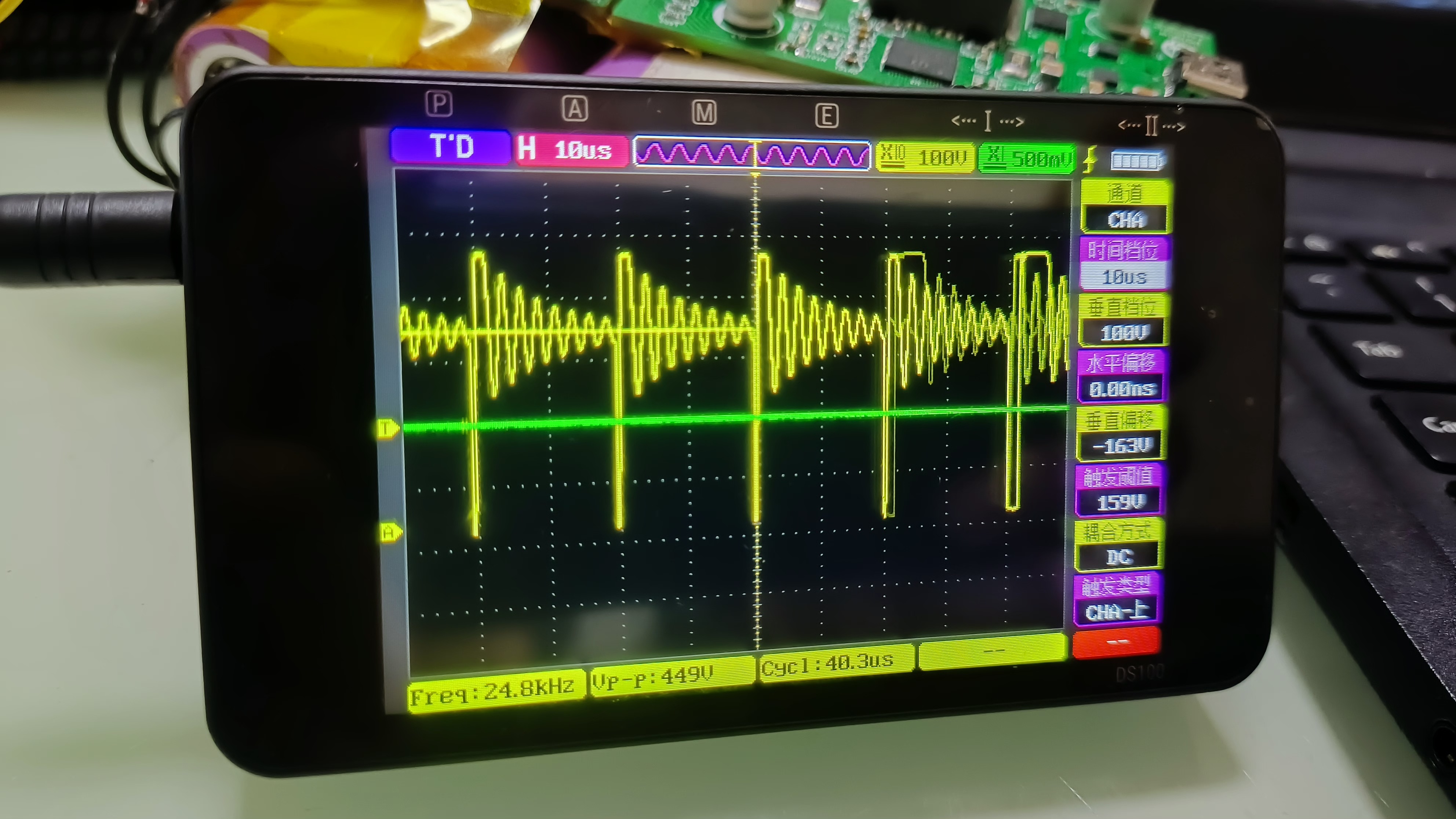 漏极谐振波形,带负载时漏极峰值电压会达到470V-480V左右
