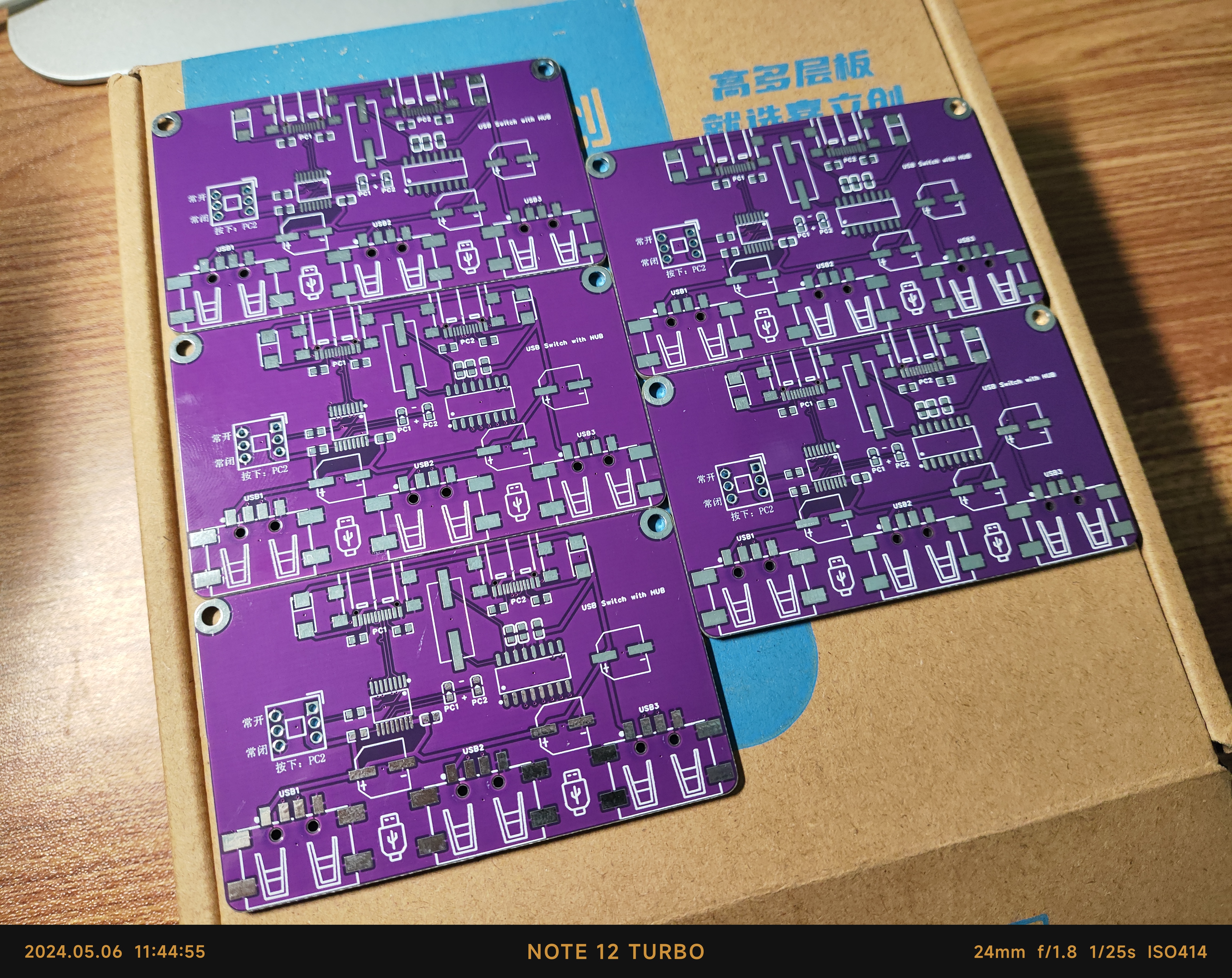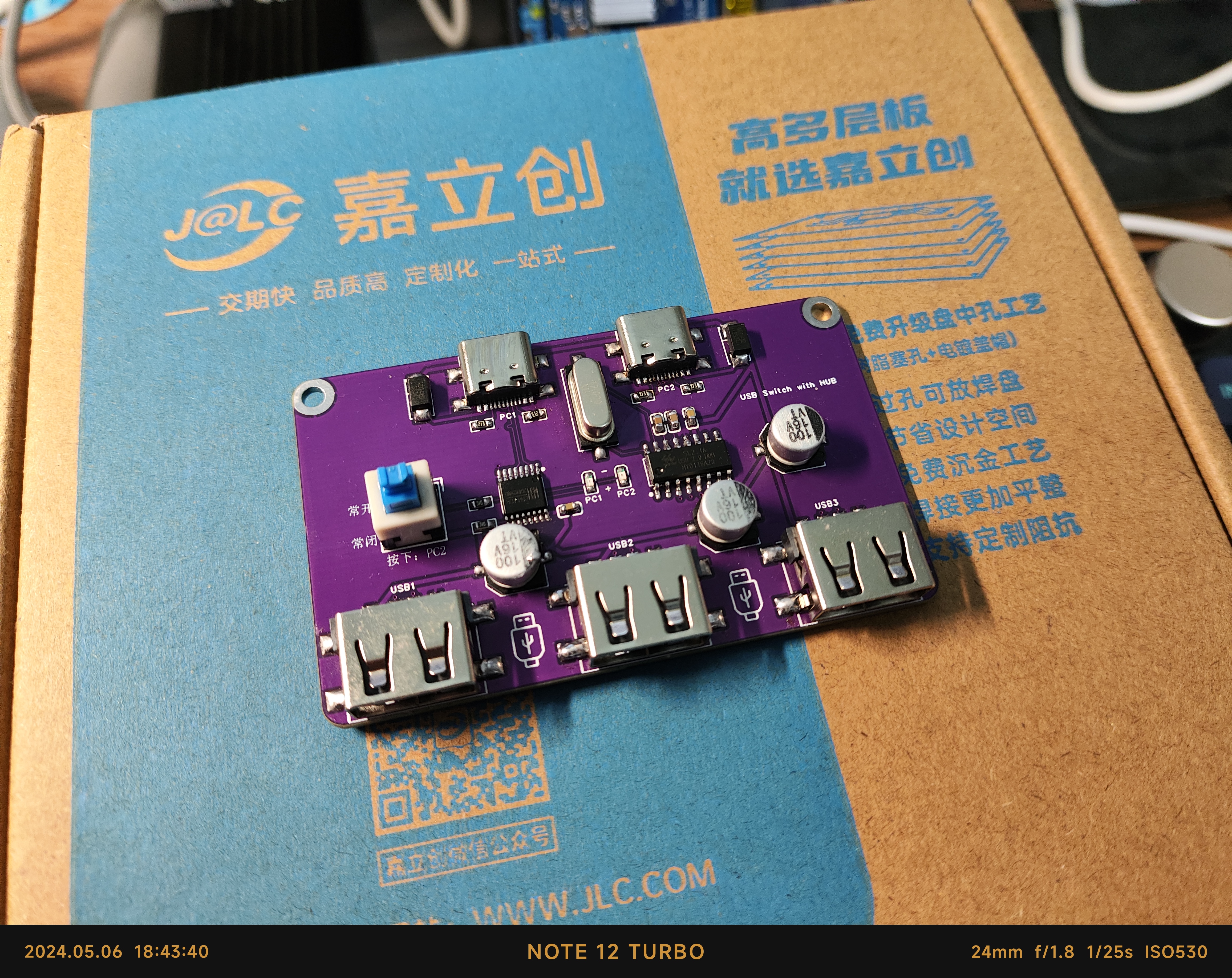 一个二进三出的USB切换器,附带HUB功能。切换芯片使用CH440R,HUB使用SL2.1A
