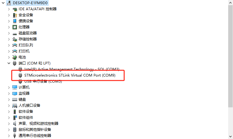 将Type-C线与烧录器相连,接上电脑(接上时可以看到烧录器正面上方的LED闪烁,电源指示灯常亮),在电脑的设备管理器里可以看到STLINK设备