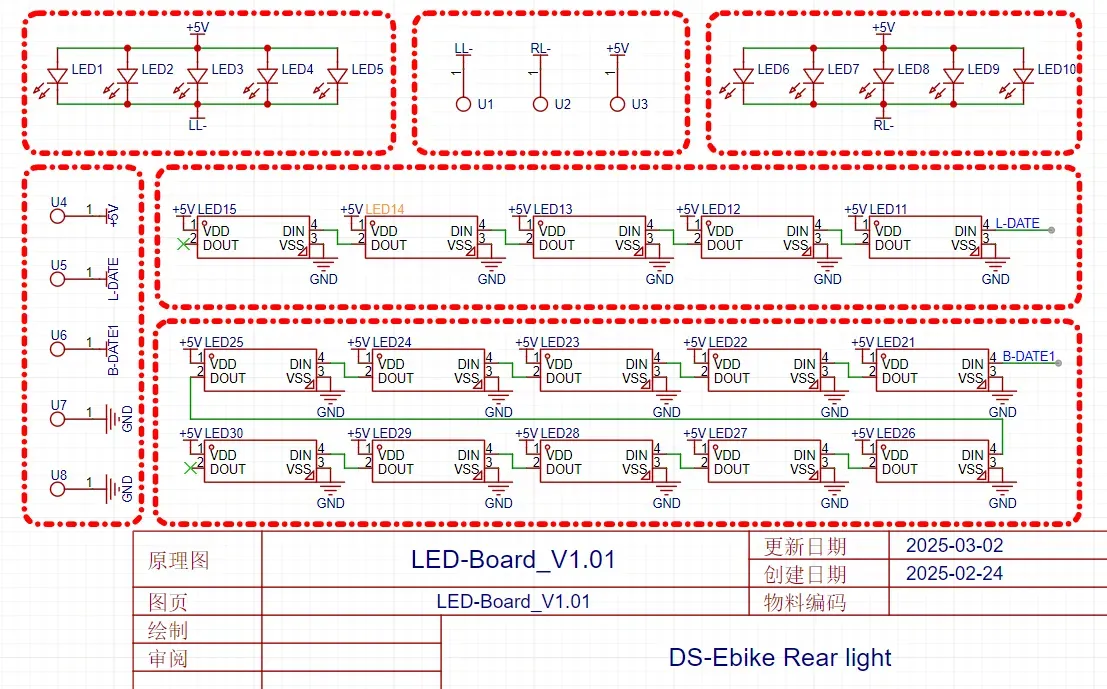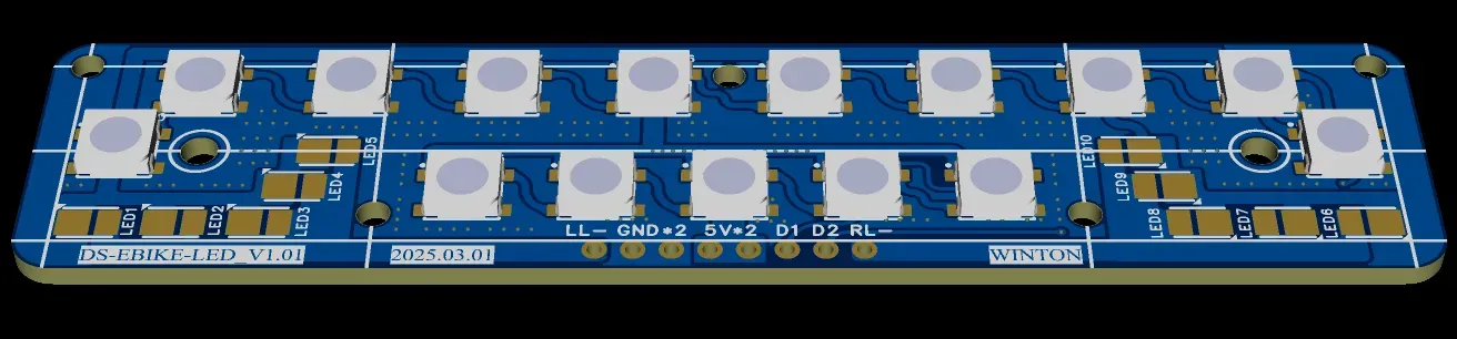 1,灯板分为左右转向,采用5颗2835的高亮灯珠,并联方式,5V供电,电流200mA,左右功率1W+1W,共计2W。