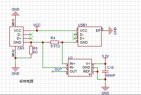 - 采用低阻值采样电阻,防止过高的内阻影响USB供电效率;