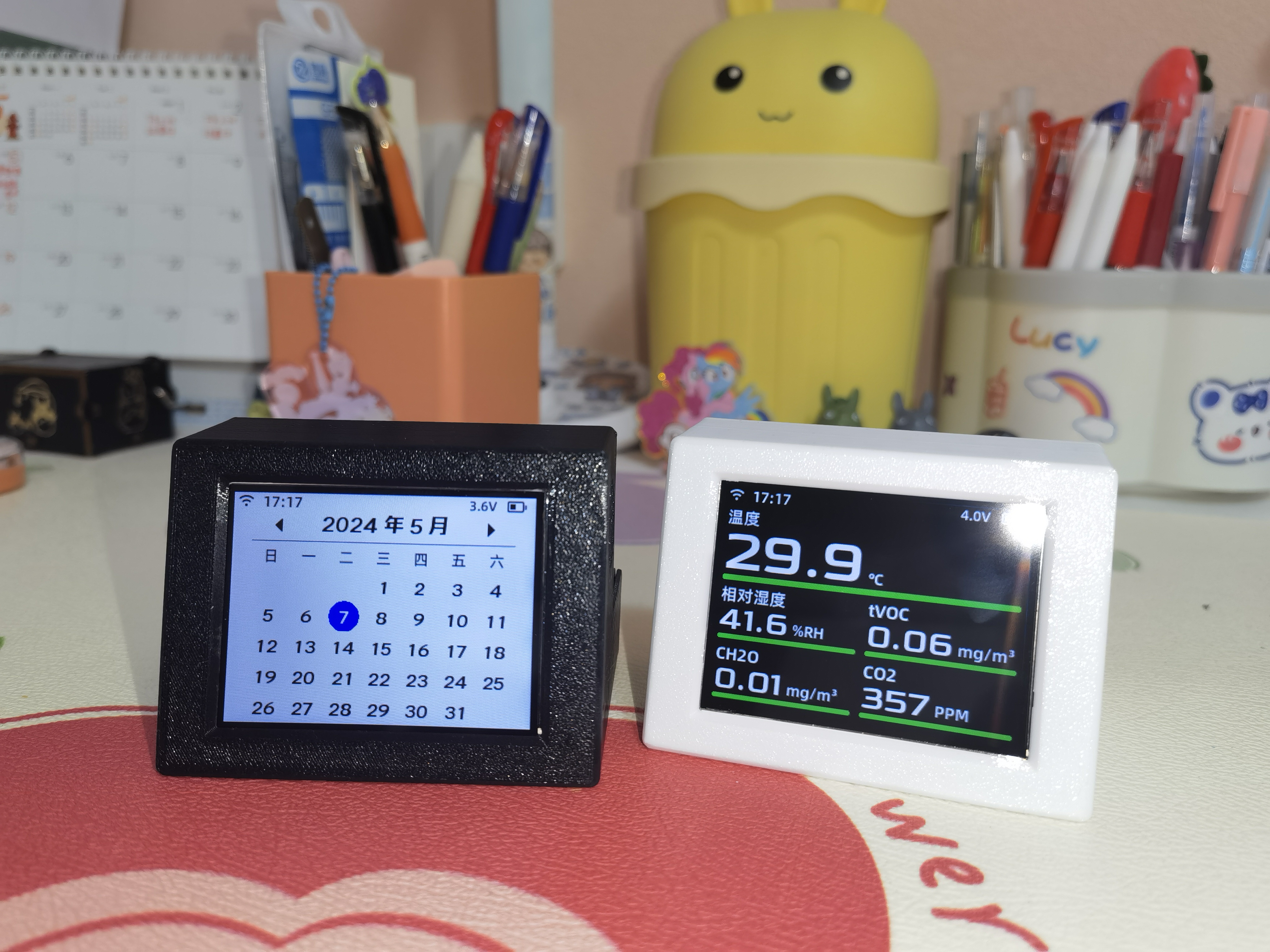 最近想给自己的3D打印机封箱,缺少一个温湿度检测仪,网上便宜的看不上,看上的价格又贵的离谱,索性就自己做了一个。 除了当温湿度检测仪使用,还有时钟、万年历、城市天气、空气指数功能。