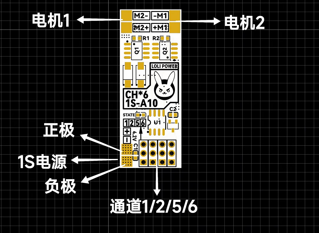 *萝莉6通道接收机的基础上集成萝莉的双路单向有刷电调 *接收机的第3通道和第4通道已经接到了电调上,对应萝莉控上的油门和方向 *如果外接舵机,最好是1S电源供电