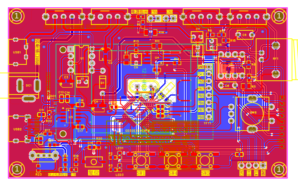PCB设计我也是萌新一个,画出来的勉强能用,我的adc线拉的长了点,好在没出啥问题,实物验证基本功能没问题
