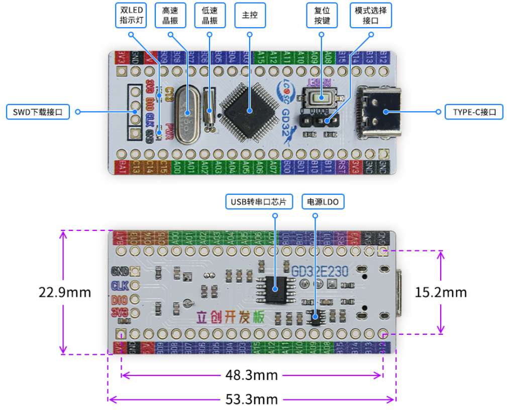单片机电路使用了由立创开发板团队推出的GD32最小系统板电路,个人喜好将电路整合到一块板子上,GD32芯片一块多一个,淘宝很 便宜。