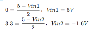 当输入信号Vin不衰减时,将Vo=0、Vo=3.3V分别代入公式得: